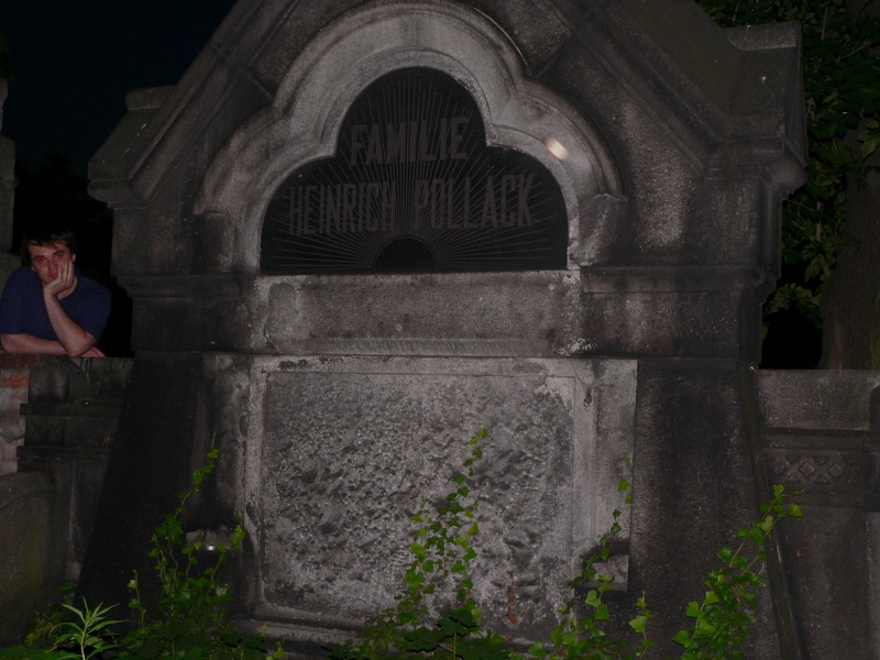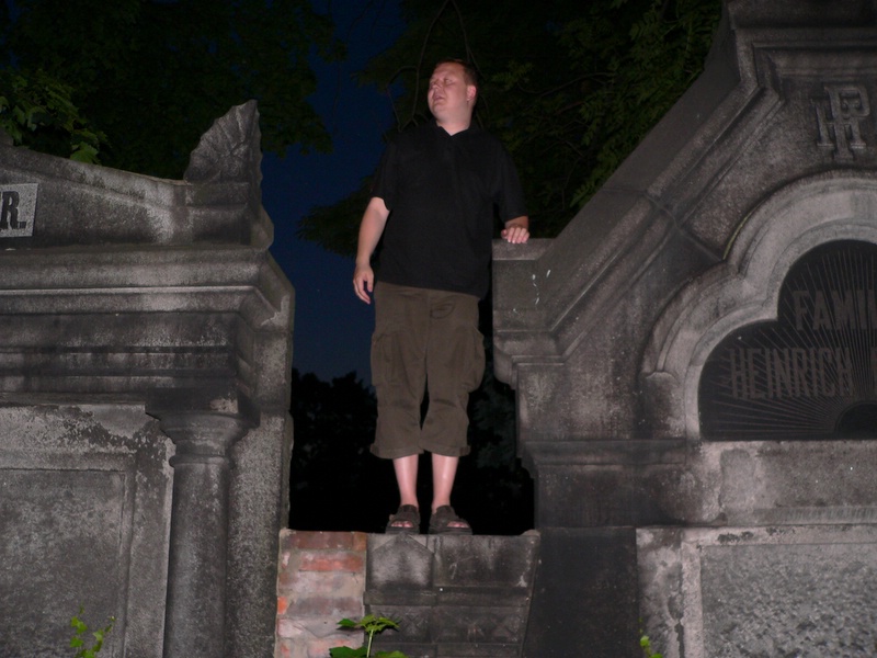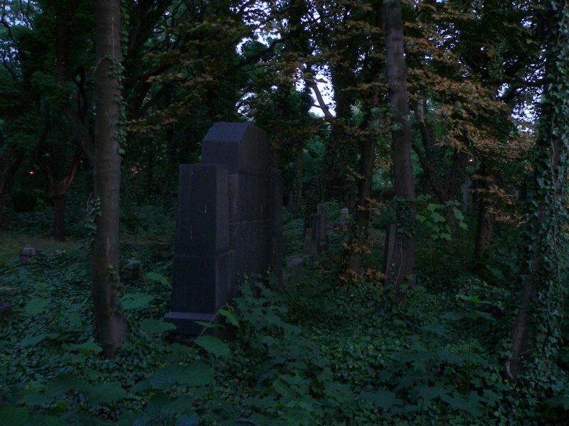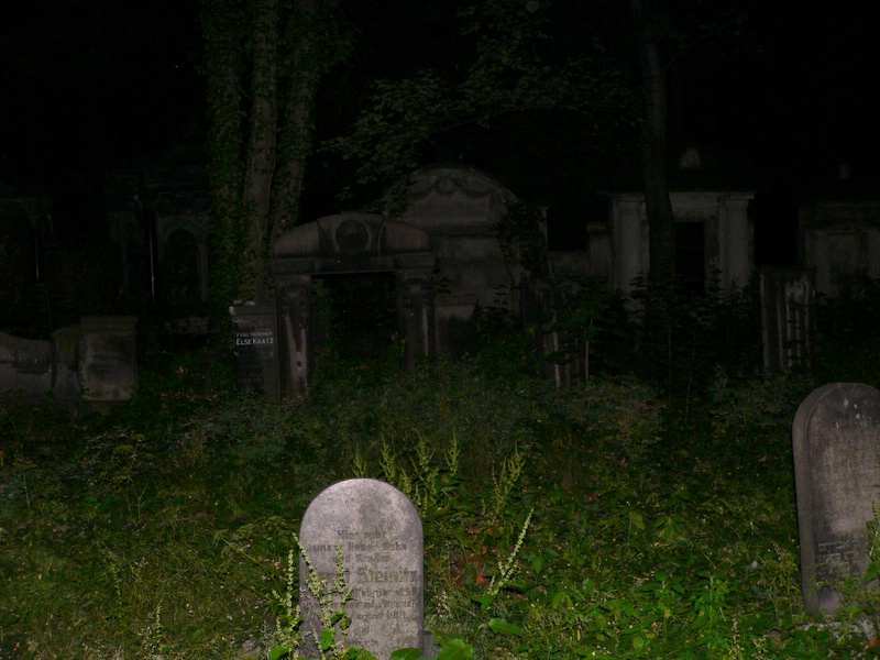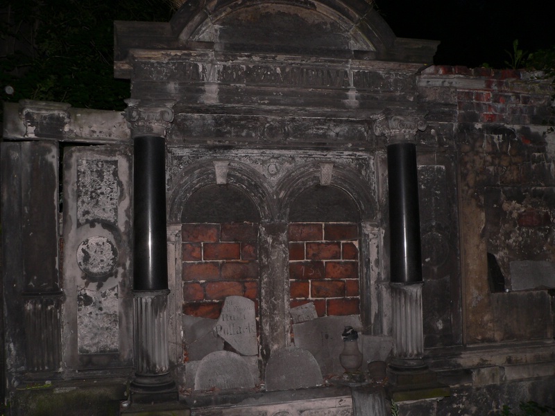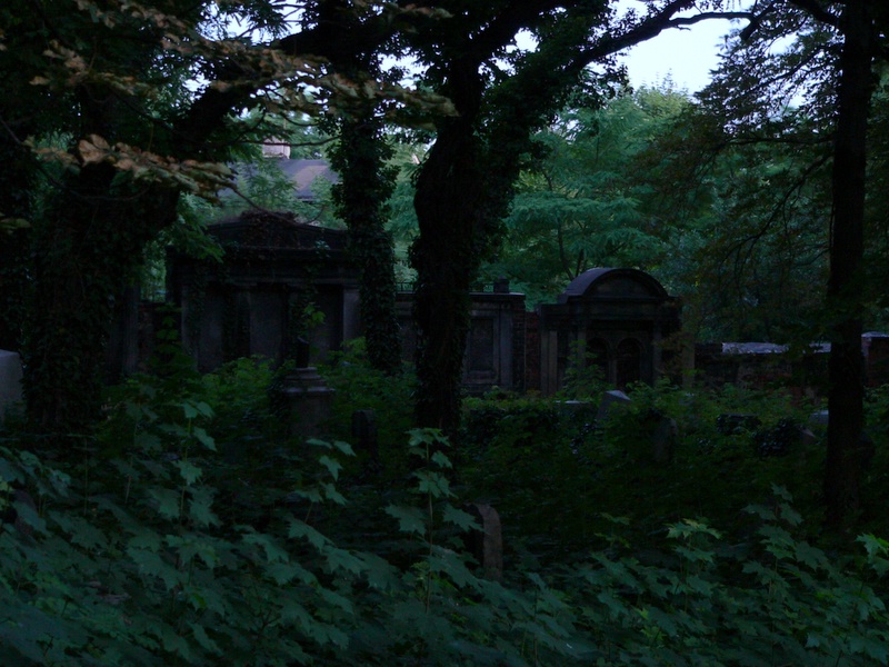 Pierwszy rzut oka na cmentarz. Wszystko porośnięte bluszczem. 0 godzinie 22, nawet w lipcu, całkiem ciekawe wrażenia.