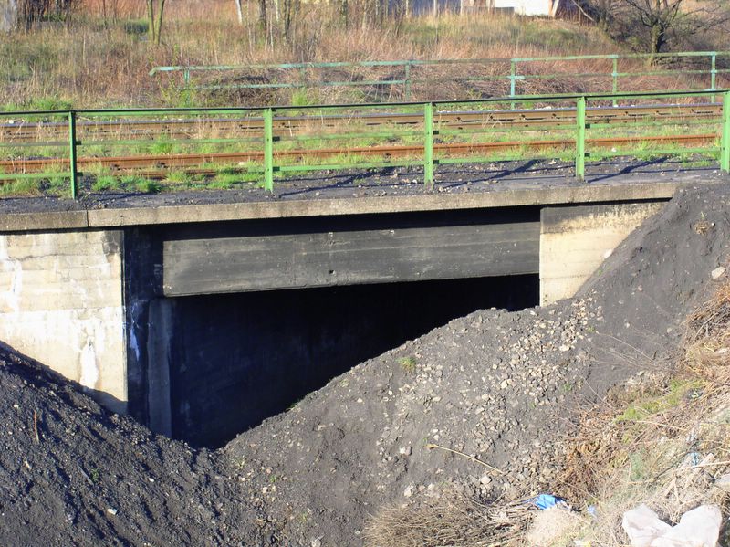 Jeszcze jeden wiadukt na wąską linią. Drugiej strony nie umieszczę, wystarczy śmieci na dziś. Na wiadukcie tory które dalek przecinają Sikorskiego koło byłej kopalni. Ostatnio naprawiono przejazd likwidując kilka torów. Dobrze, że choć jedną linię zostawiono.
